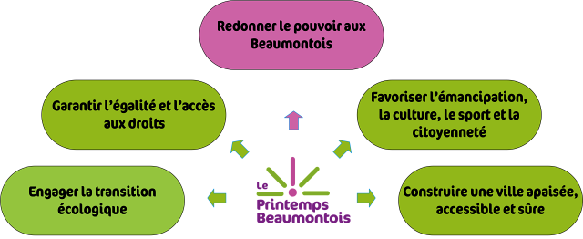 - Nous mettrons en place des assemblées citoyennes en amont de tous les projets importants. Les Beaumontois membres de ces conseils prendront en charge la phase décisive de réflexion, de débat, de concertation et de co-production préparant la décision assumée du conseil municipal.